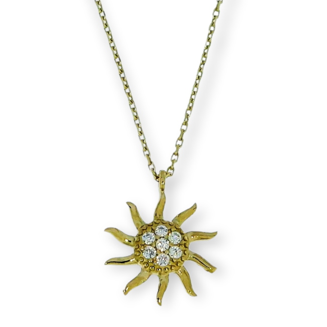 Gouden Ketting Zon Hanger Zirkonia 14 karaats 41 cm + 2 cm